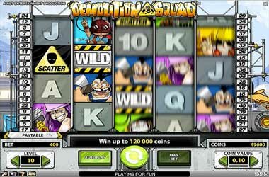 La slot Demolition Squad possiede delle fantastiche caratteristiche per i giocatori; una di queste è i bonus Demolition Wild. Quando uno qualsiasi dei simboli appare orizzontalmente, verticalmente o diagonalmente tra i simboli wild, viene formato il simbolo Demolition Wild. Questo Demolition Wild appare sul terzo rullo e porta alla formazione di un altro simbolo Demolition Wild.